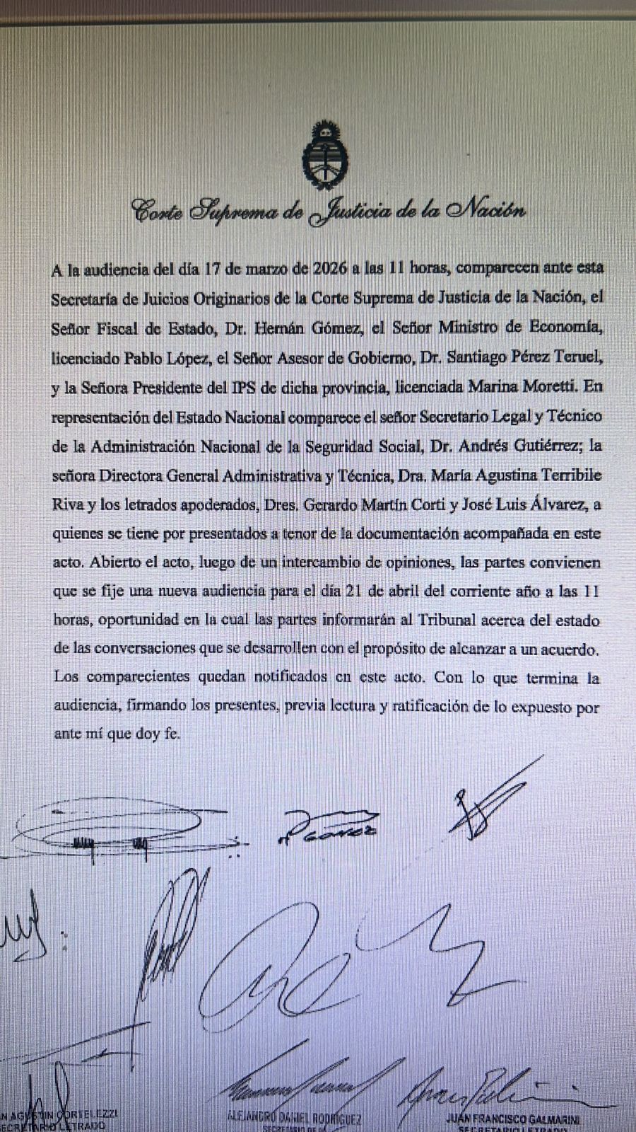Copia del acta de la audiencia en Corte Suprema por el reclamo de Provincia de Buenos Aires contra Estado